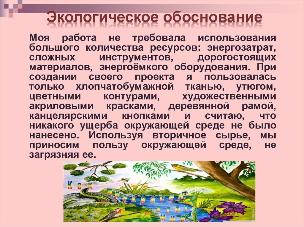 Экологическое обоснованиеМоя работа не требовала использования
