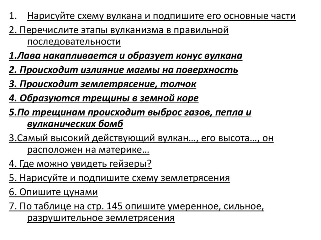 1. Нарисуйте схему вулкана и подпишите его основные части2. Перечислите этапы вулканизма в правильной