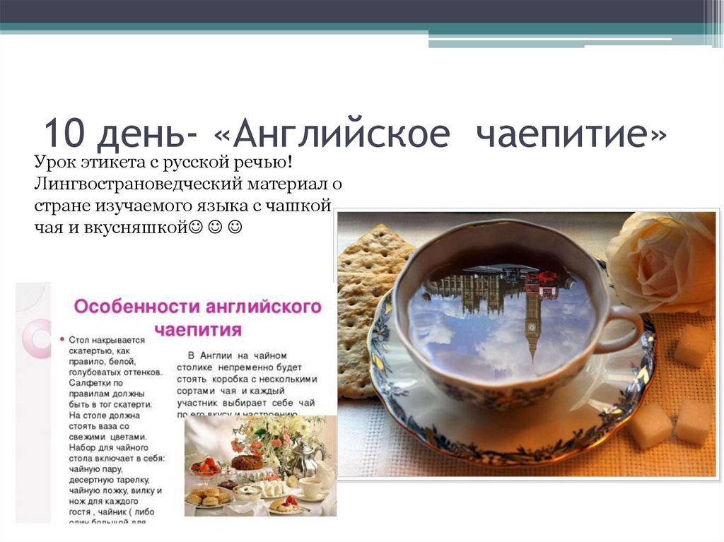 10 день- «Английское чаепитие»Урок этикета с русской речью!