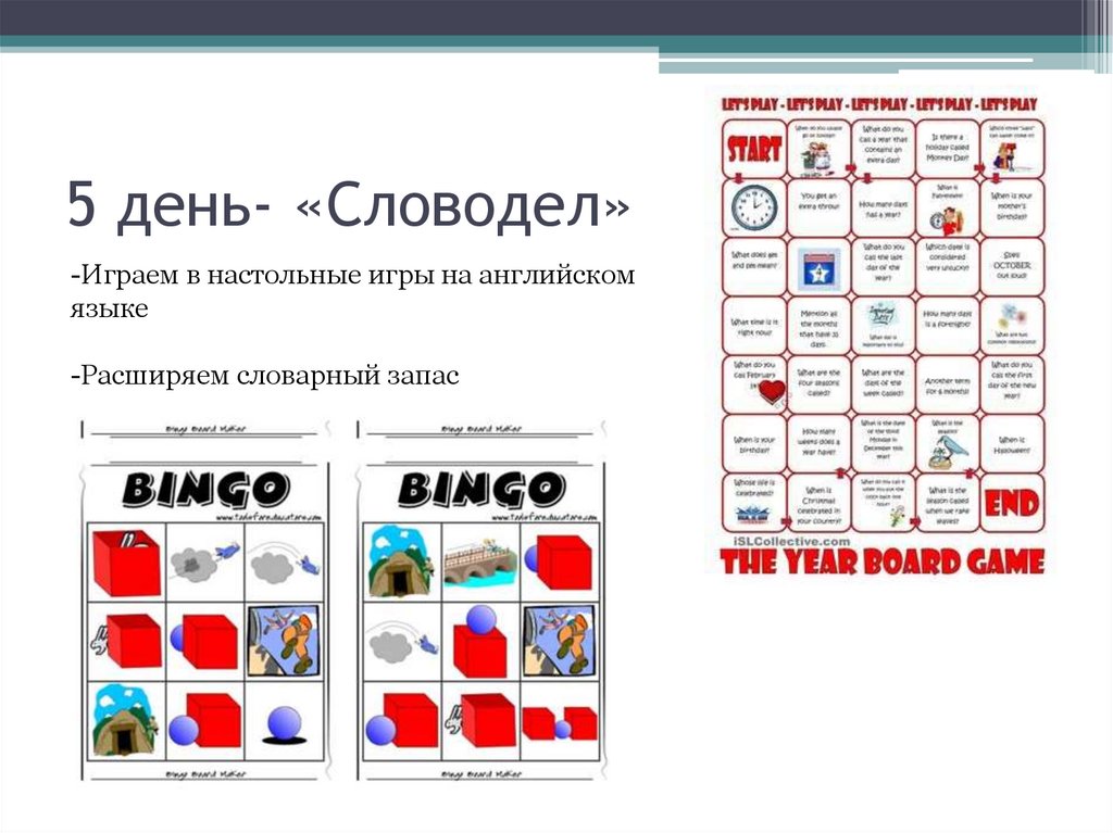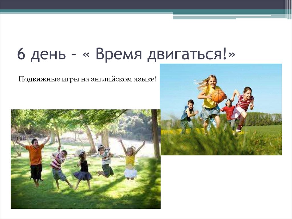 6 день – « Время двигаться!»Подвижные игры на английском языке!