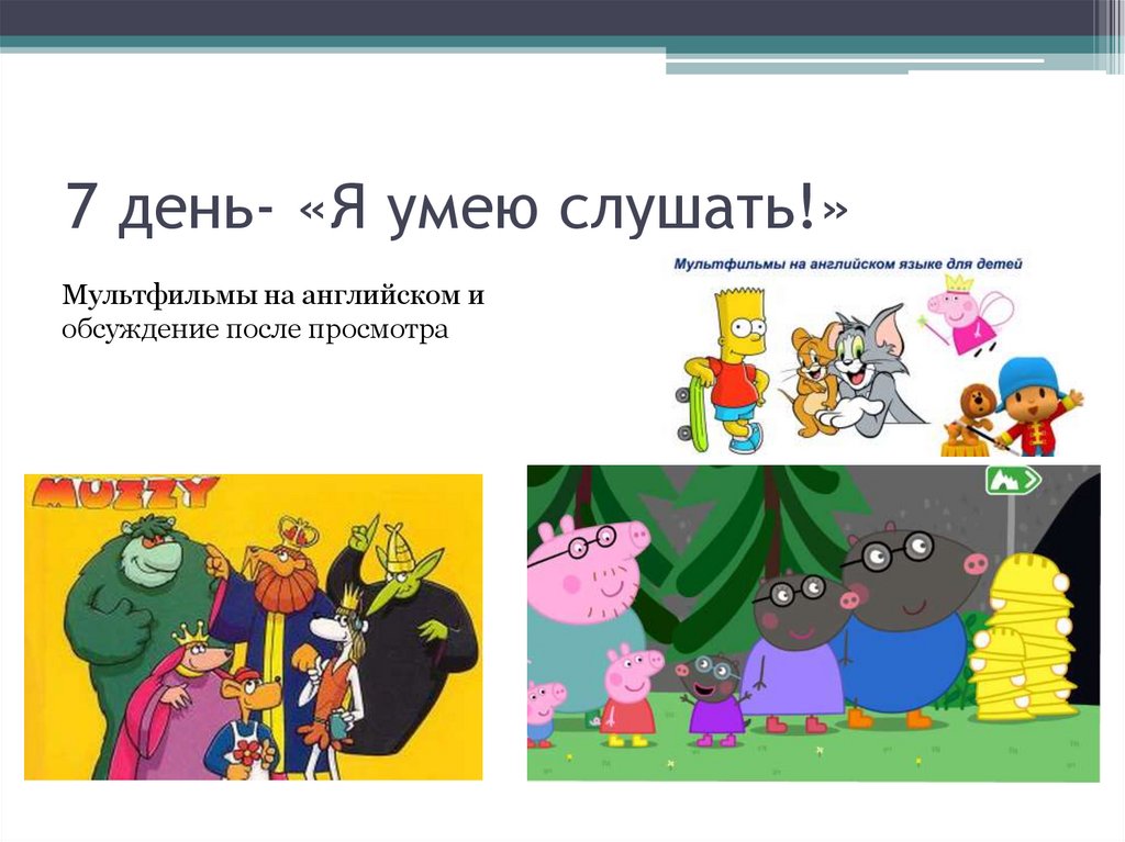 7 день- «Я умею слушать!»Мультфильмы на английском и