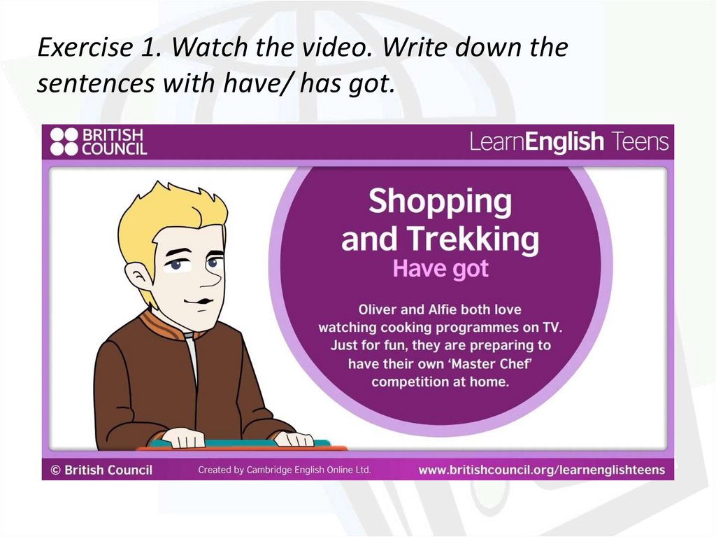 Exercise 1. Watch the video. Write down thesentences with have/ has got.