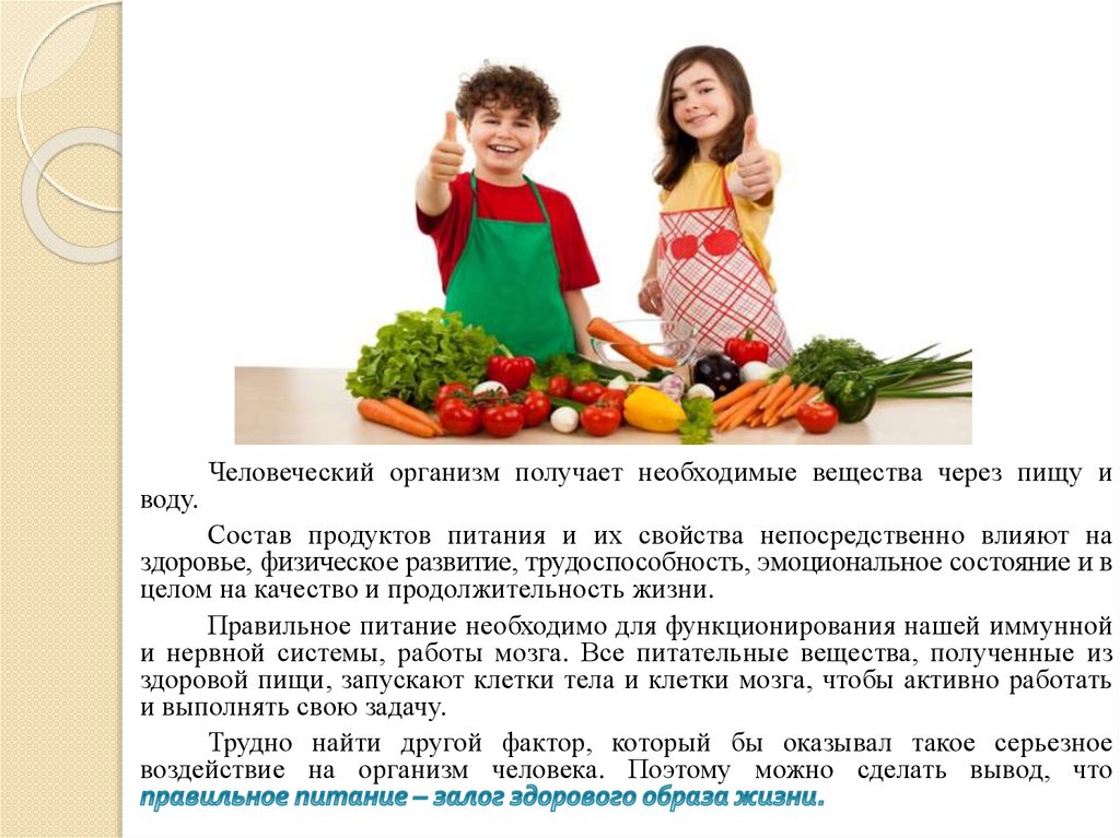 Состав продуктов питания и их свойства непосредственно влияют на