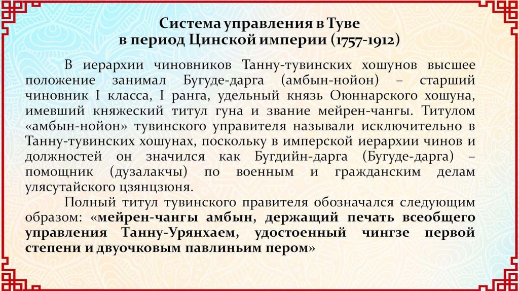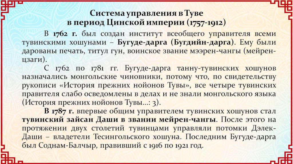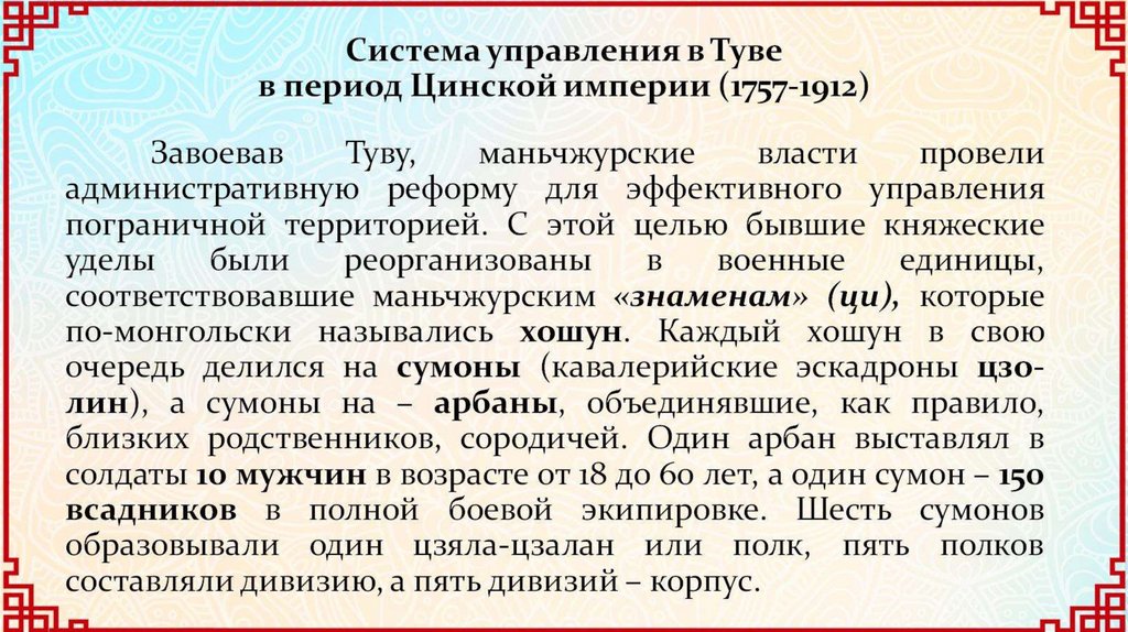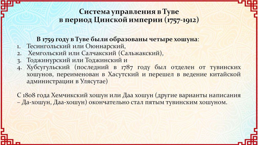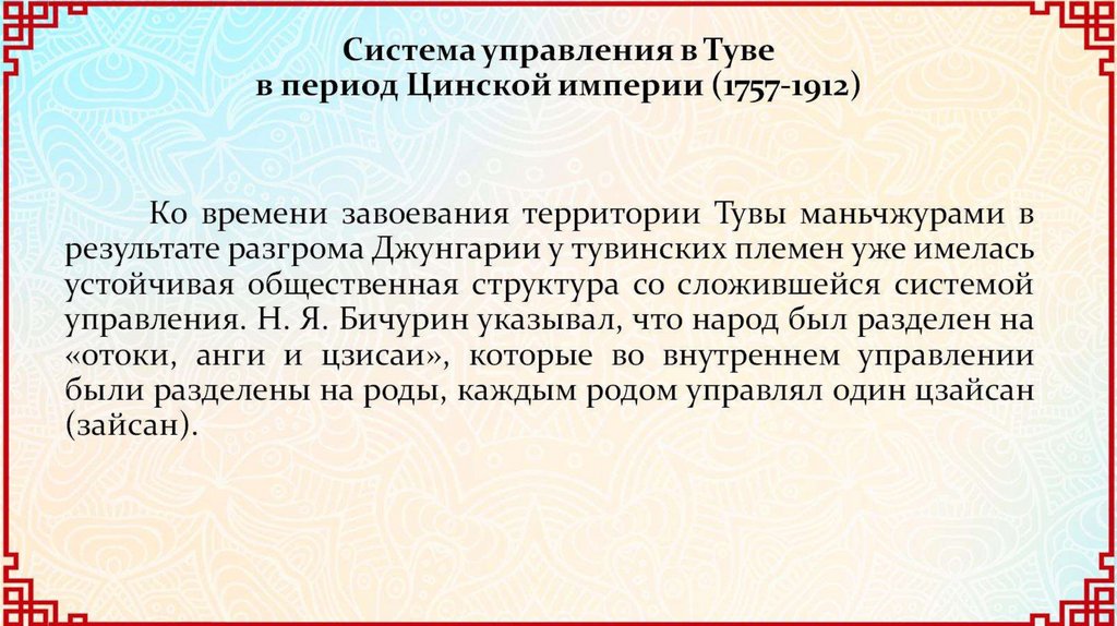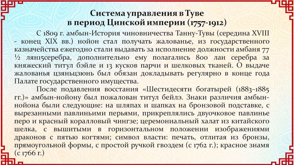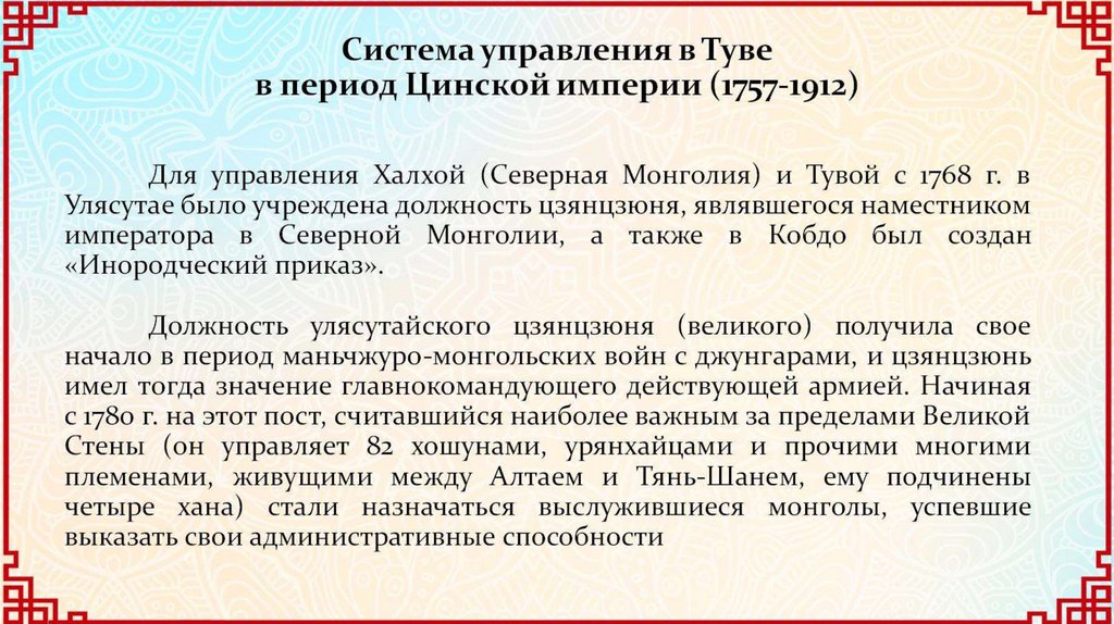 Тува в период господства Цинской империи в Центральной Азии