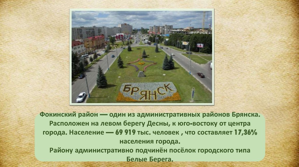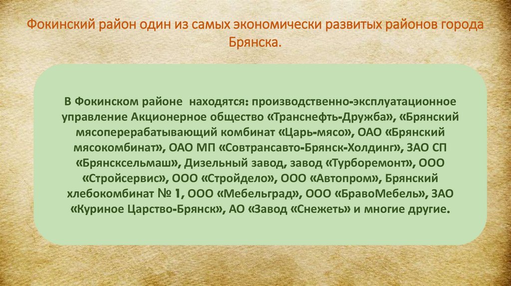Фокинский район один из самых экономически развитых районов городаБрянска.