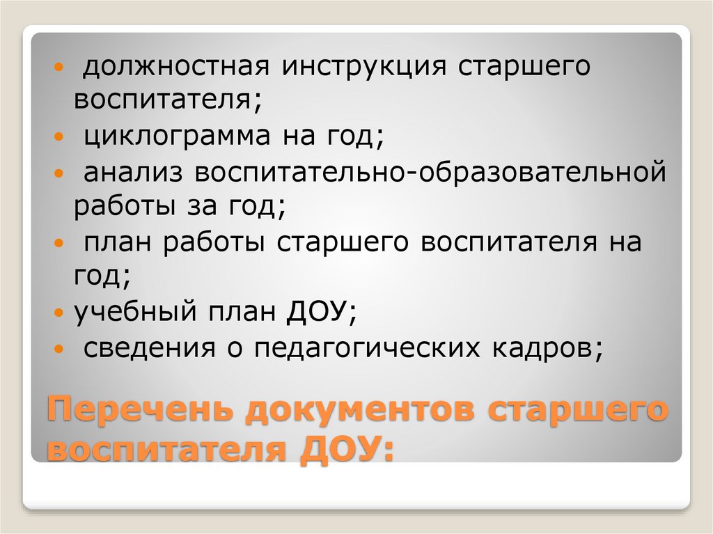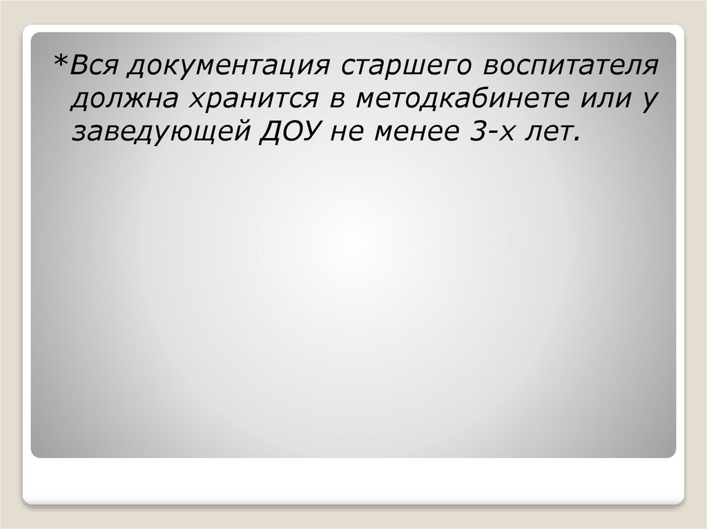 *Вся документация старшего воспитателядолжна хранится в методкабинете или у