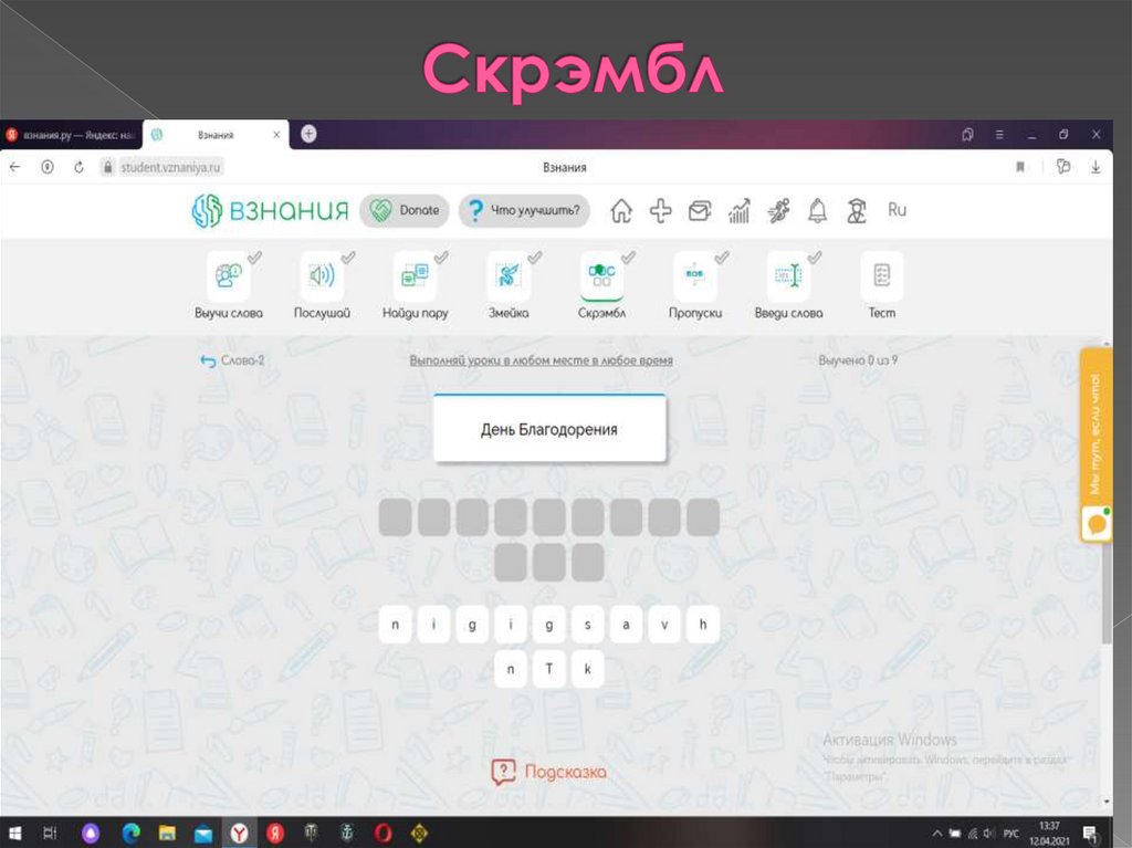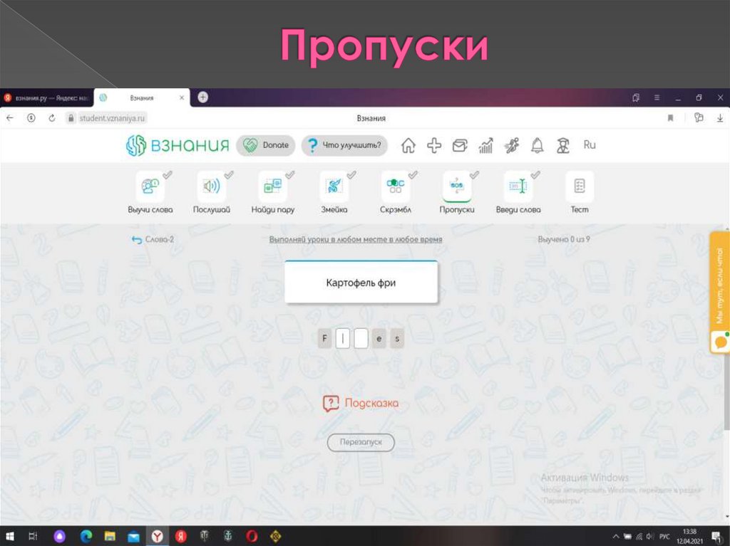 платформы (Взнания.ру) и применить