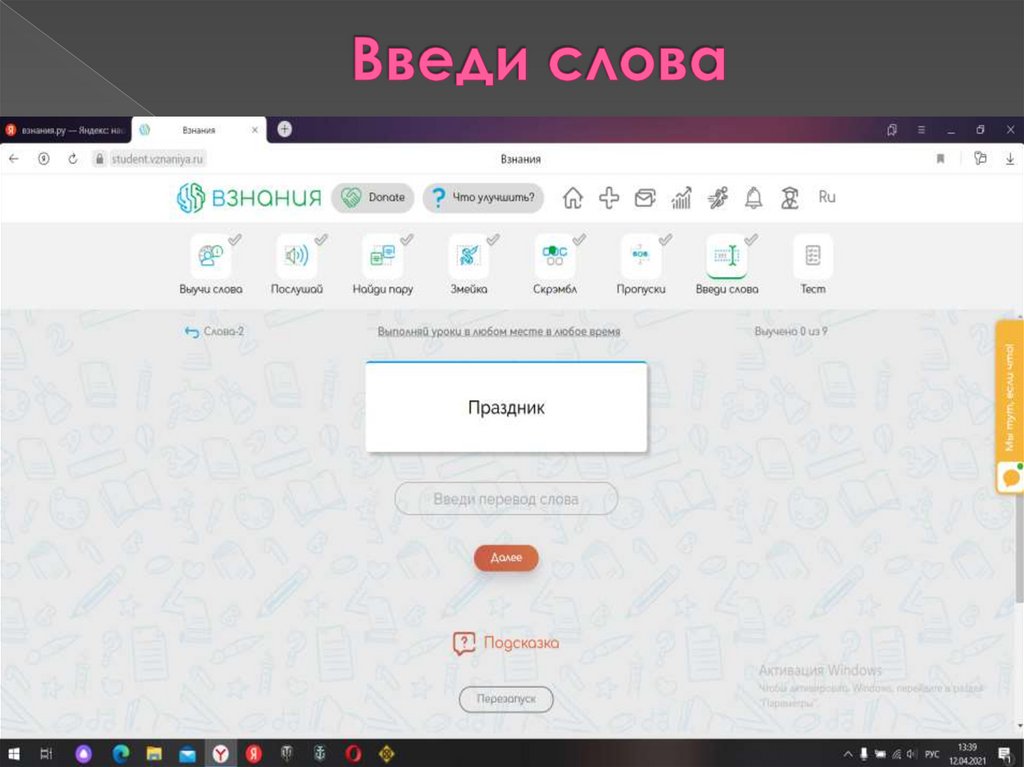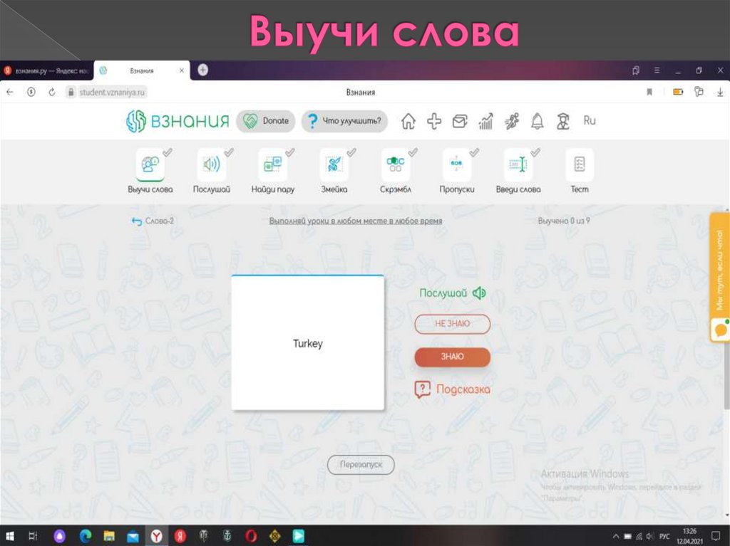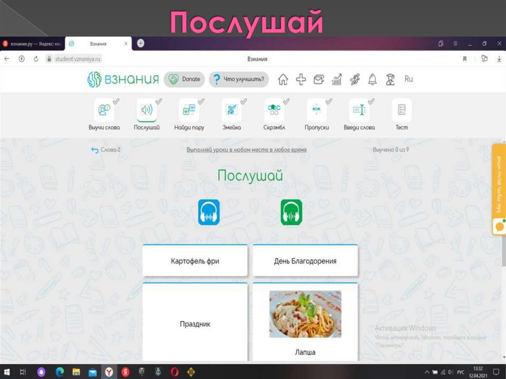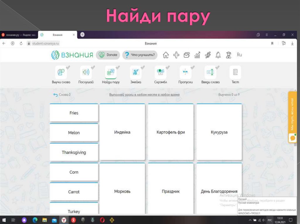 Выучи слова, послушай, найди пару,