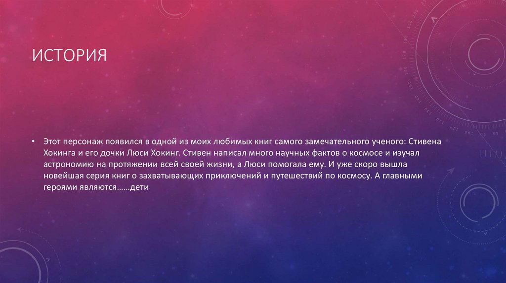 ИСТОРИЯ• Этот персонаж появился в одной из моих любимых книг самого замечательного ученого: Стивена