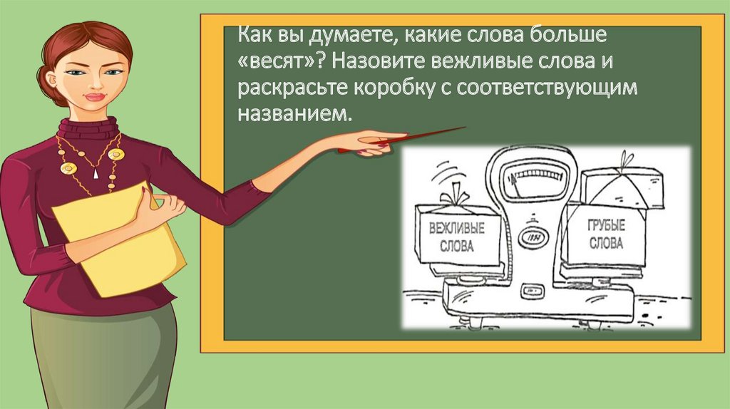Как вы думаете, какие слова больше«весят»? Назовите вежливые слова и
