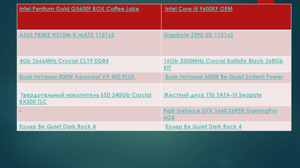 Intel Pentium Gold G5600F BOX Coffee LakeIntel Core i5 9600KF OEM
