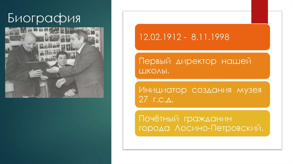 ПЕРВЫЙ ДИРЕКТОР ЛОСИНО-ПЕТРОВСКОЙ СРЕДНЕЙ ШКОЛЫ №2 (С