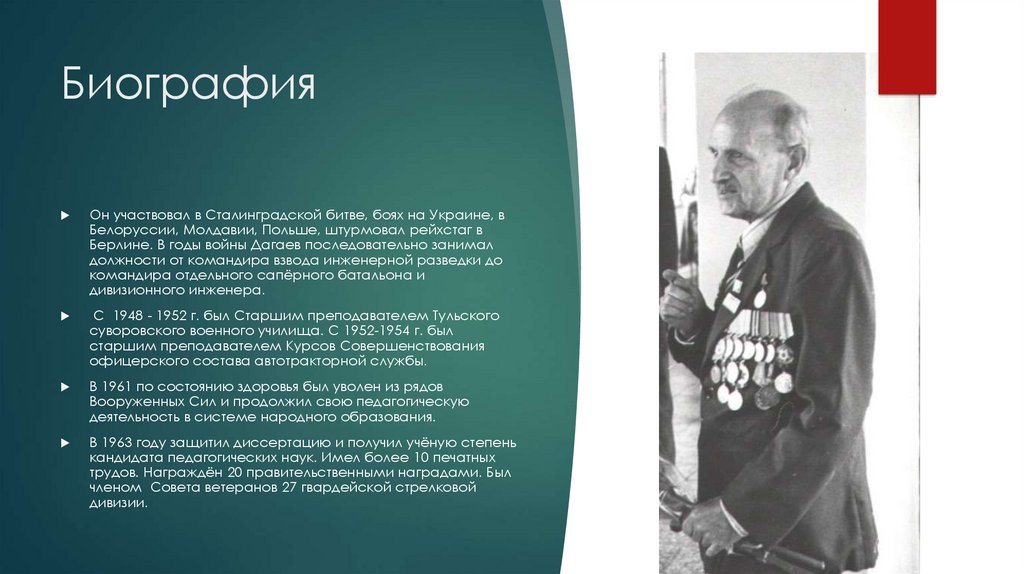 Берлине. В годы войны Дагаев последовательно занимал