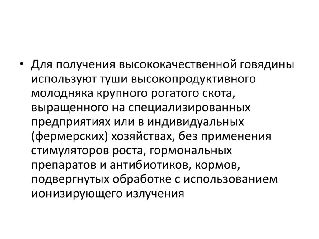 • Для получения высококачественной говядиныиспользуют туши высокопродуктивного