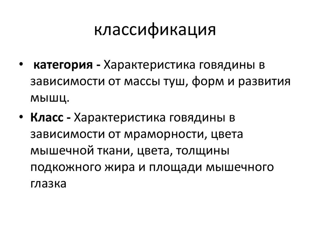 классификация• категория - Характеристика говядины в