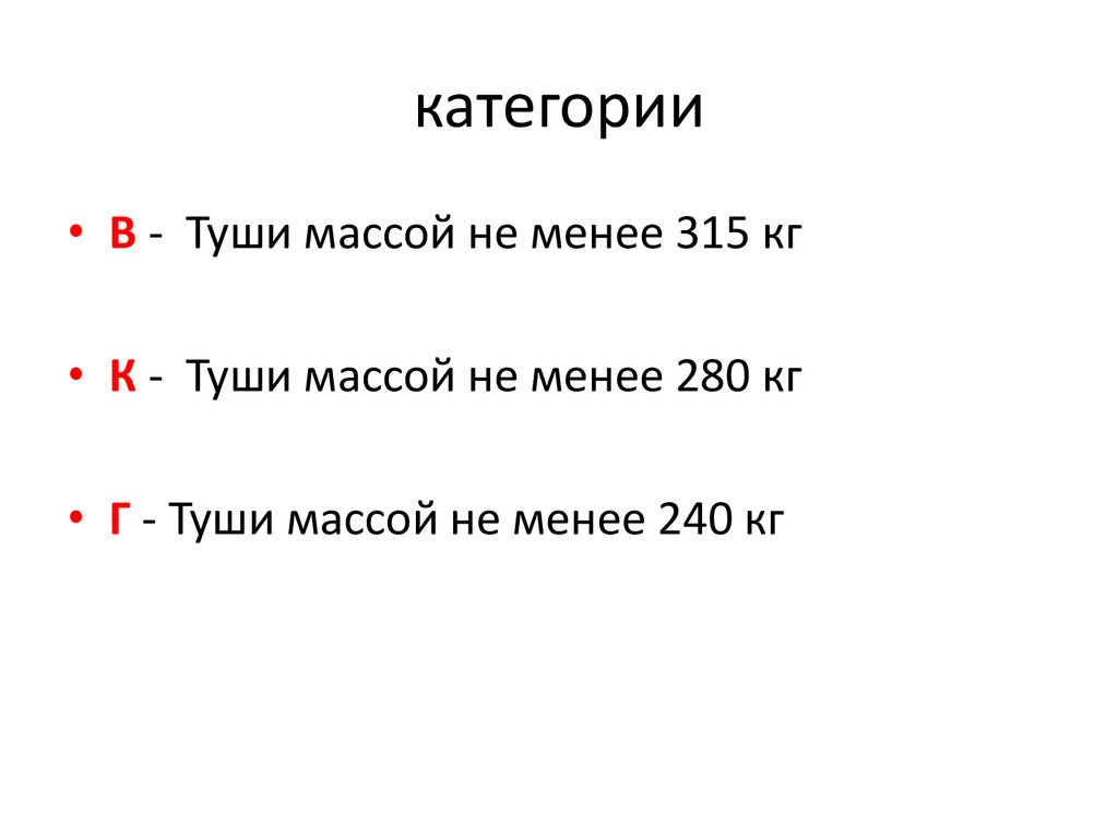 категории• В - Туши массой не менее 315 кг