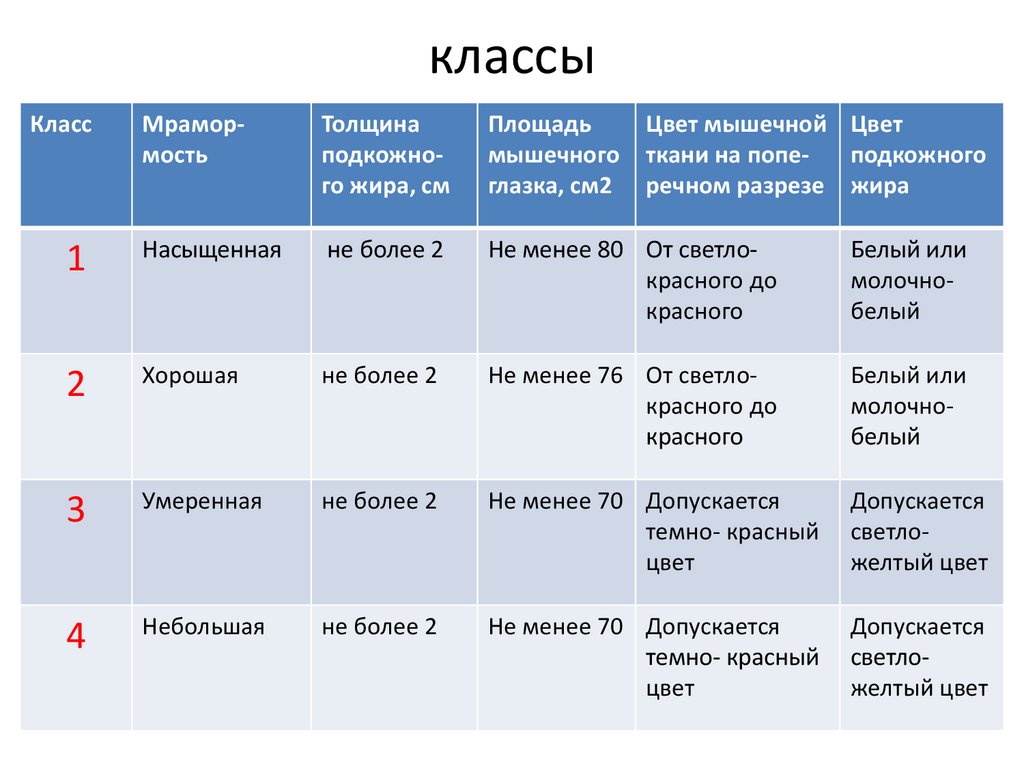 • Класс - Характеристика говядины в