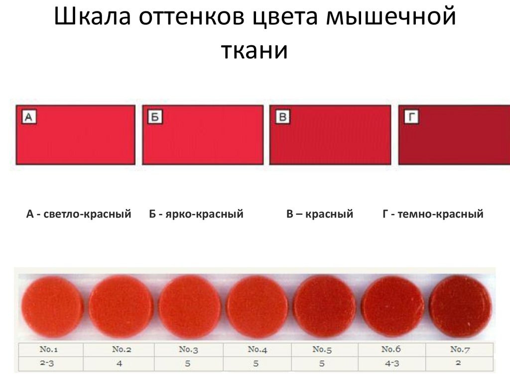 Шкала оттенков цвета мышечнойткани