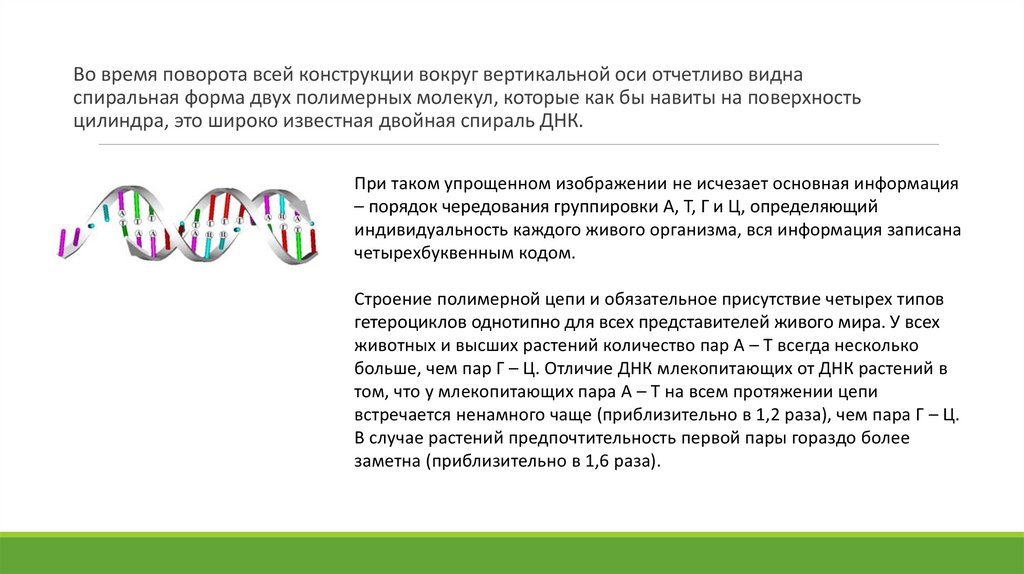 том, что у млекопитающих пара А – Т на всем протяжении цепи
