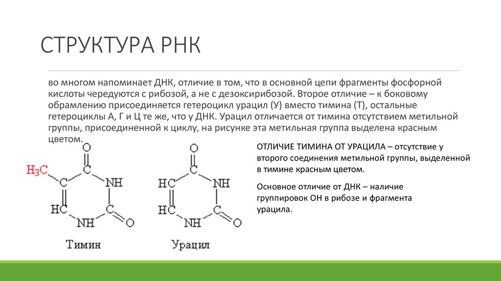 Основное отличие от ДНК – наличие