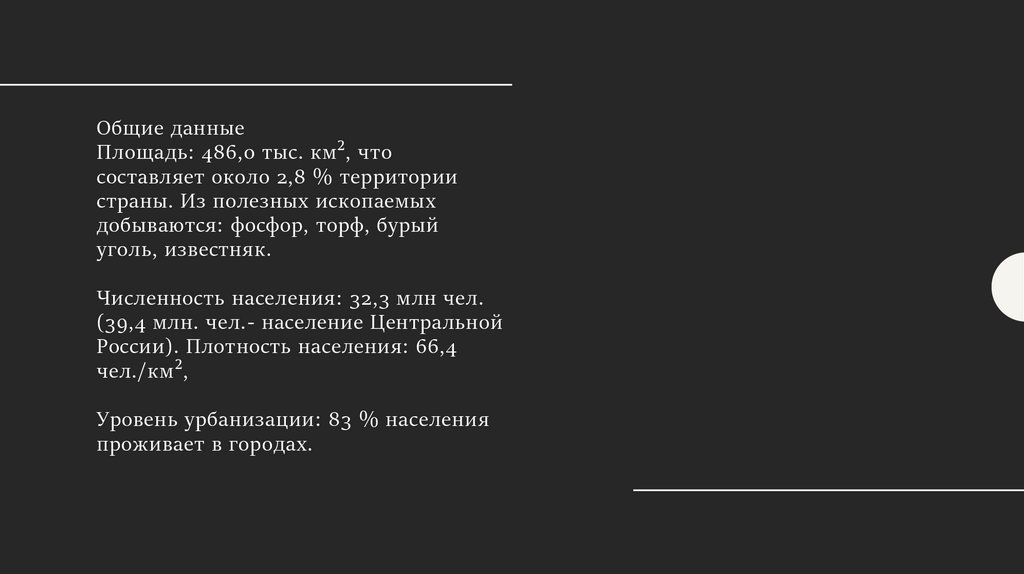 Общие данныеПлощадь: 486,0 тыс. км², что