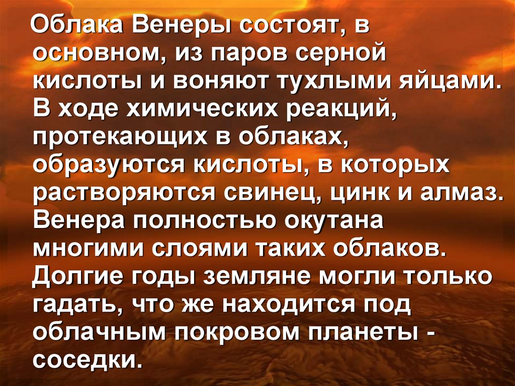 Плотная атмосфера Венеры, состоящая восновном из углекислого газа, тяжелым