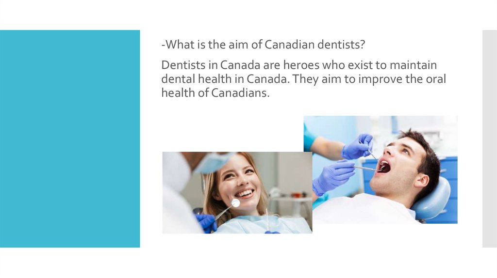 -What is the aim of Canadian dentists?Dentists in Canada are heroes who exist to maintain