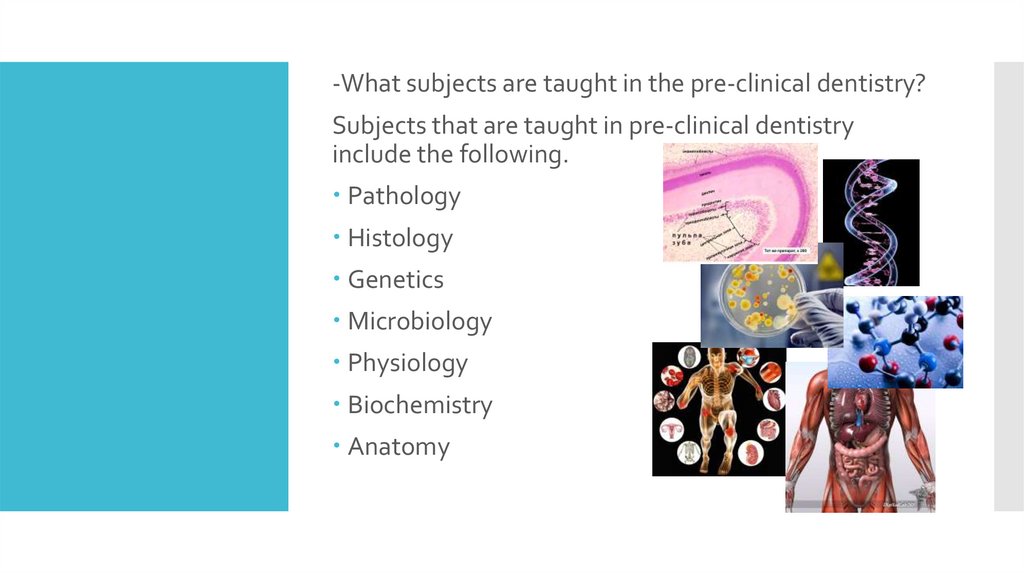 -What subjects are taught in the pre-clinical dentistry?Subjects that are taught in pre-clinical dentistry