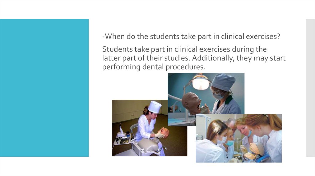 -When do the students take part in clinical exercises?Students take part in clinical exercises during the