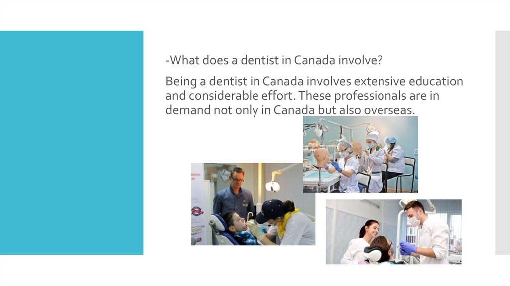 -What does a dentist in Canada involve?Being a dentist in Canada involves extensive education