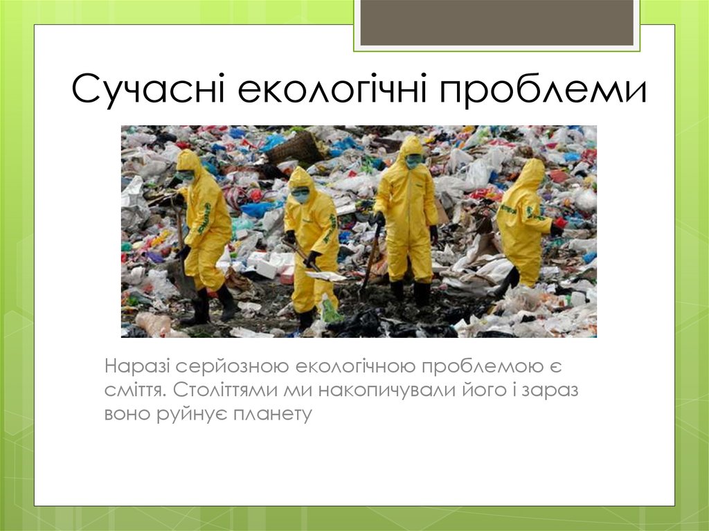 Сучасні екологічні проблемиНаразі серйозною екологічною проблемою є