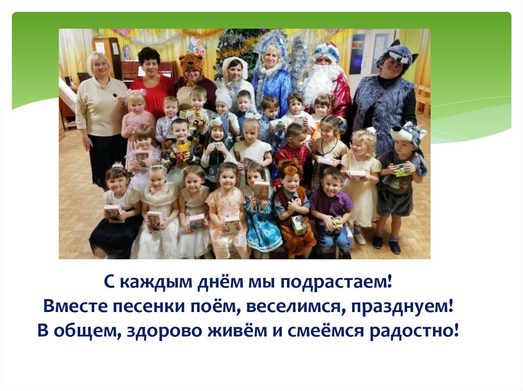 С каждым днём мы подрастаем!Вместе песенки поём, веселимся, празднуем!