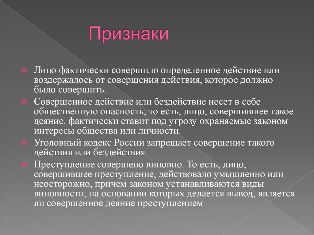 Лицо фактически совершило определенное действие иливоздержалось от совершения действия, которое должно