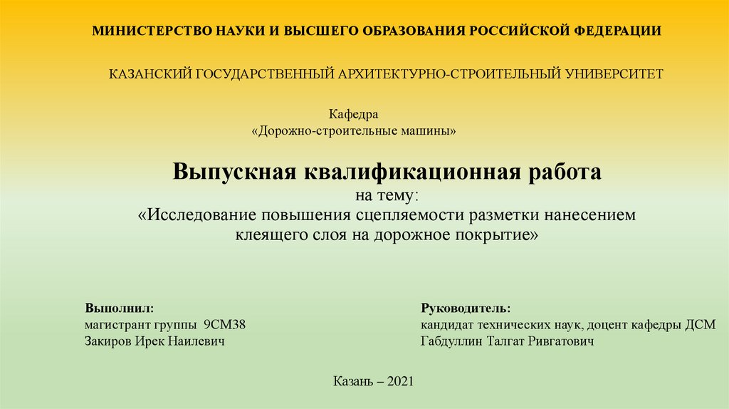 МИНИСТЕРСТВО НАУКИ И ВЫСШЕГО ОБРАЗОВАНИЯ РОССИЙСКОЙ ФЕДЕРАЦИИКАЗАНСКИЙ ГОСУДАРСТВЕННЫЙ АРХИТЕКТУРНО-СТРОИТЕЛЬНЫЙ УНИВЕРСИТЕТ
