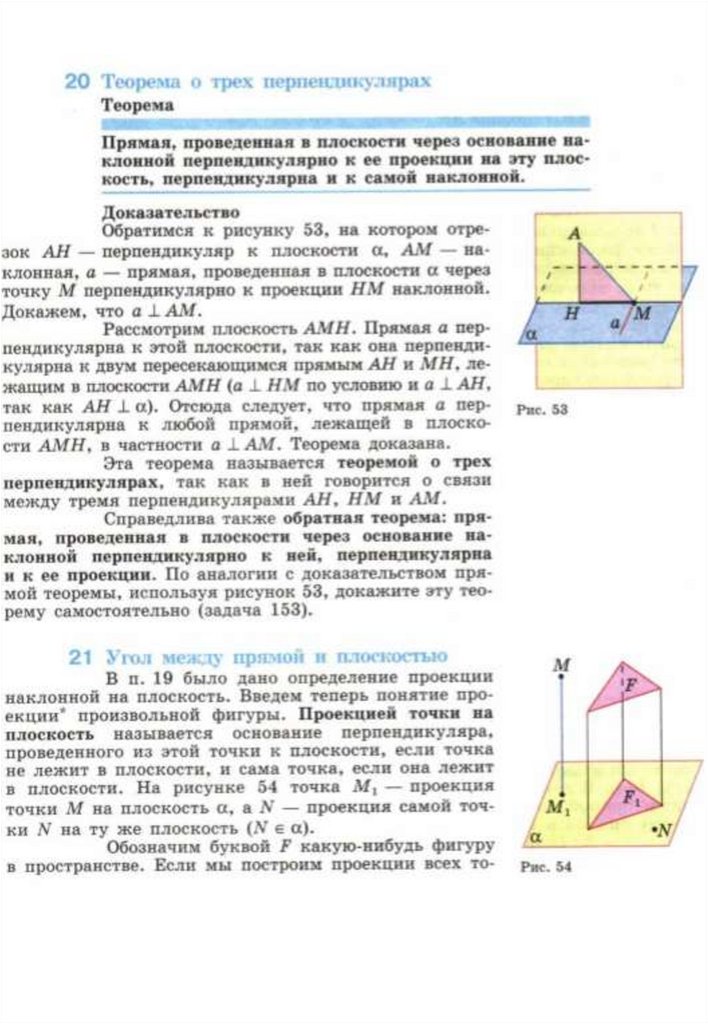 Перпендикуляр и наклонная к плоскости. Теорема о трех перпендикулярах