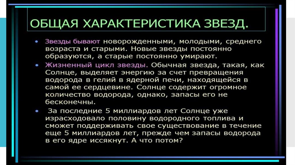 свет, исходящий от них. Поэтому сейчас при описании звезд