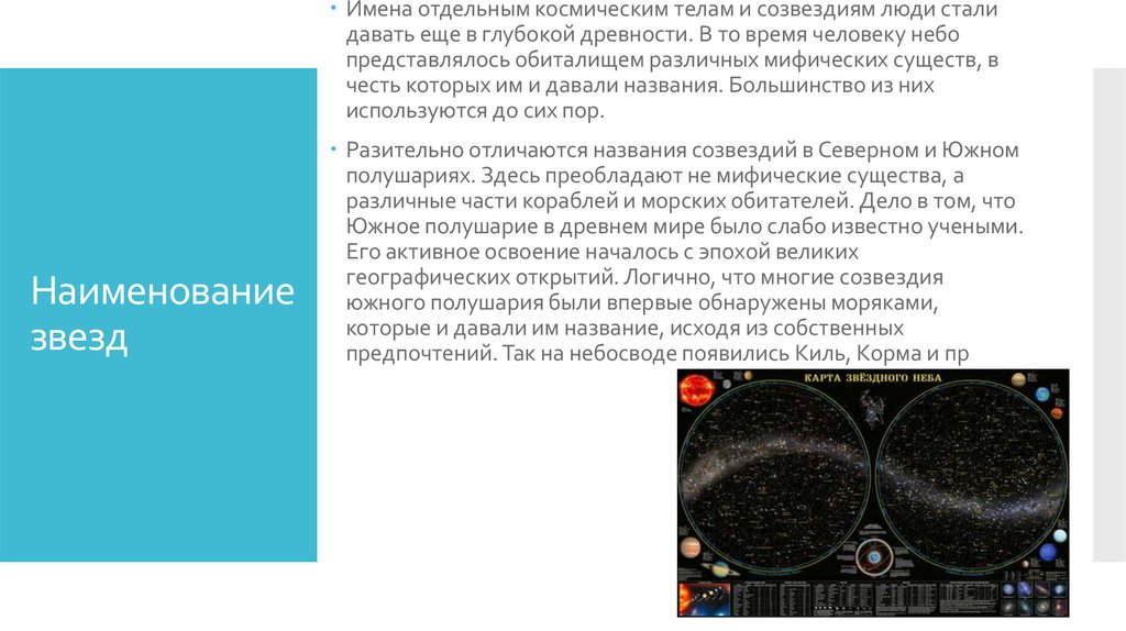 Имена отдельным космическим телам и созвездиям люди сталидавать еще в глубокой древности. В то время человеку небо