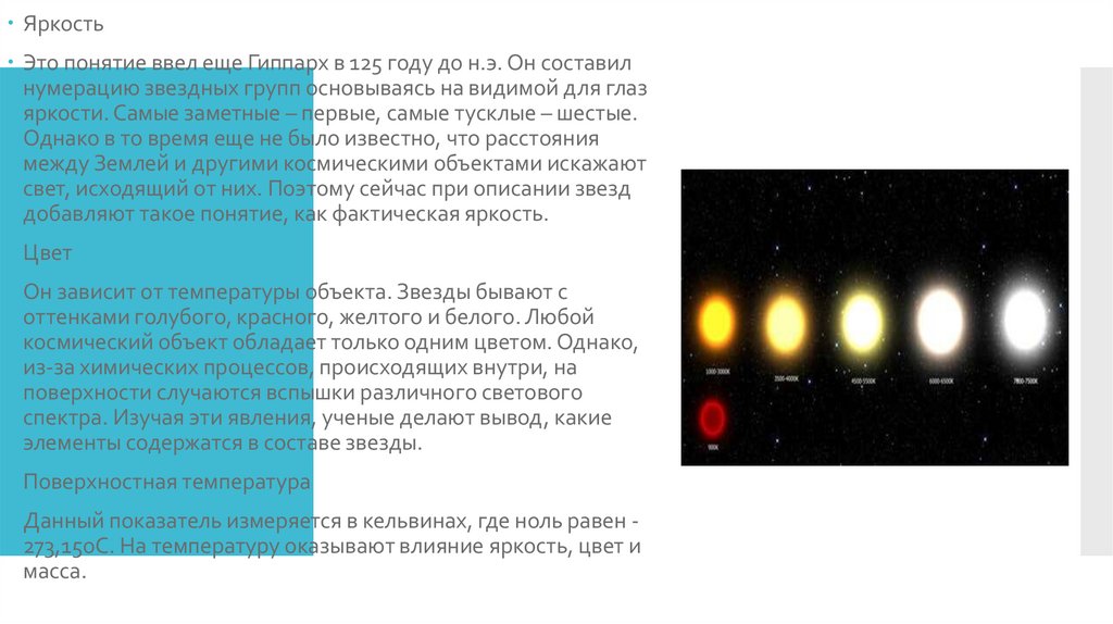 ЯркостьЭто понятие ввел еще Гиппарх в 125 году до н.э. Он составил