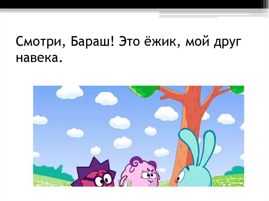 Смотри, Бараш! Это ёжик, мой другнавека.