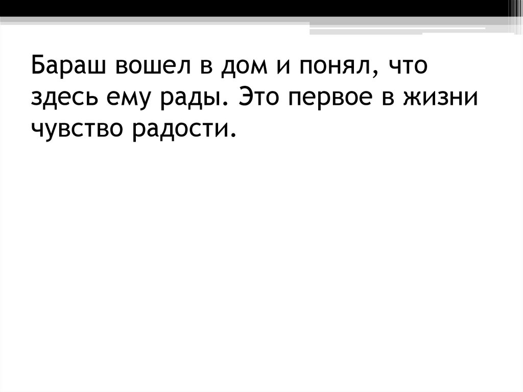 Бараш вошел в дом и понял, чтоздесь ему рады. Это первое в жизни