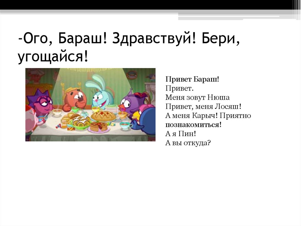 -Ого, Бараш! Здравствуй! Бери,угощайся!