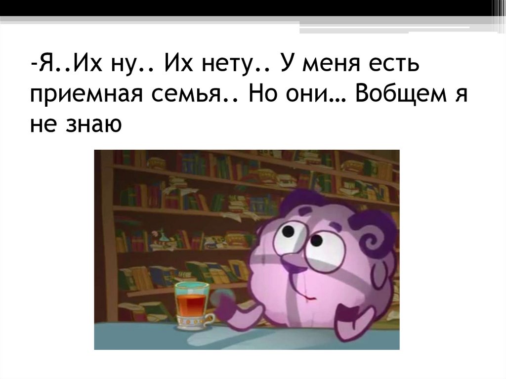 -Я..Их ну.. Их нету.. У меня естьприемная семья.. Но они… Вобщем я