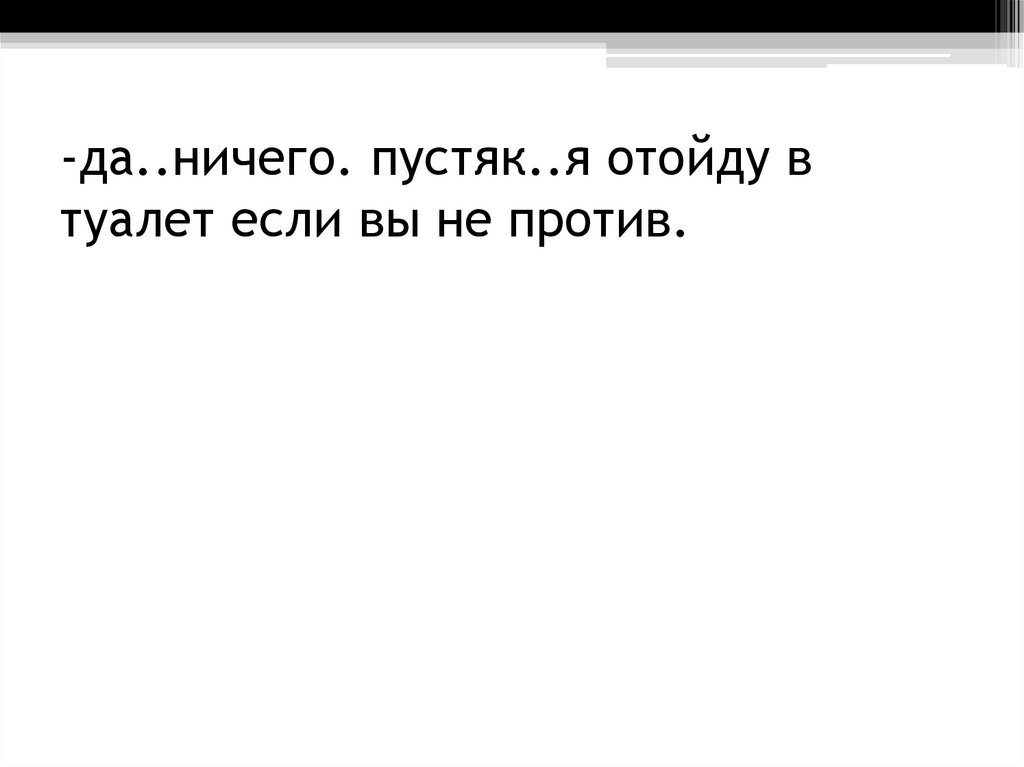 -да..ничего. пустяк..я отойду втуалет если вы не против.