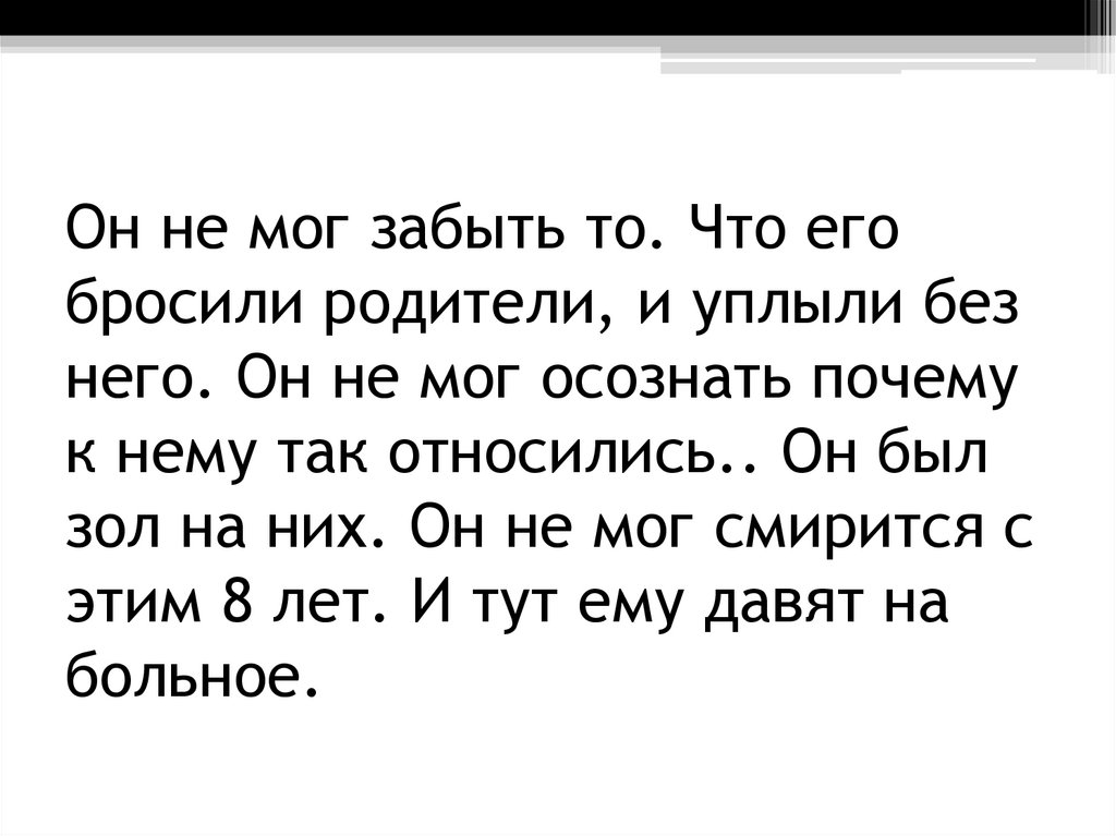 Он не мог забыть то. Что егобросили родители, и уплыли без