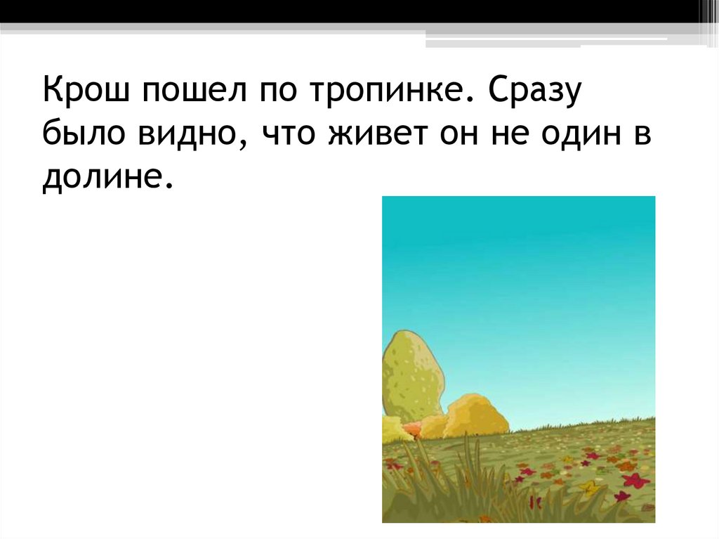Крош пошел по тропинке. Сразубыло видно, что живет он не один в