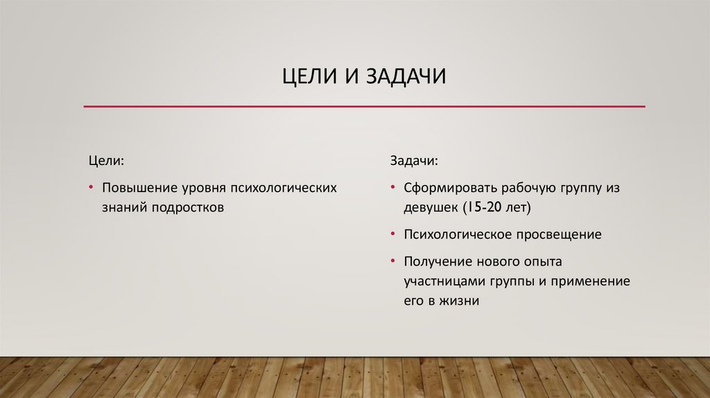 Разработка программы для целевой аудитории подростков « Женской беседки».
