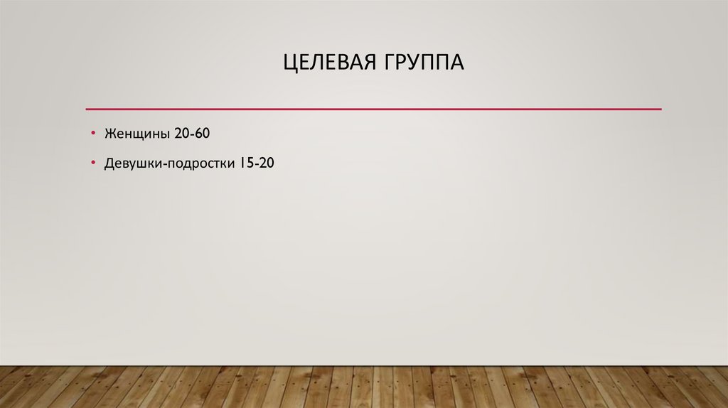 ЦЕЛЕВАЯ ГРУППА• Женщины 20-60