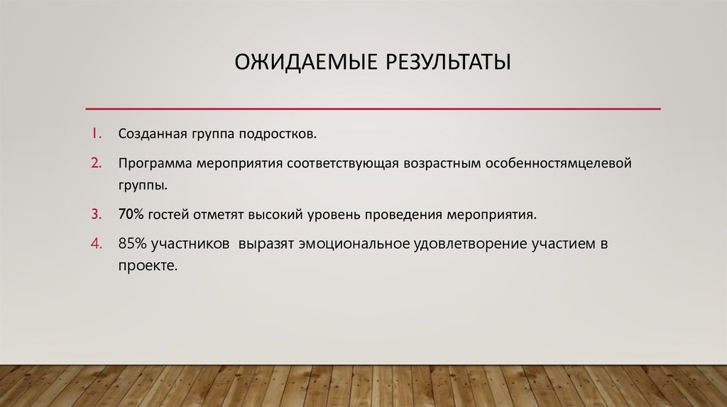 ОЖИДАЕМЫЕ РЕЗУЛЬТАТЫ1.