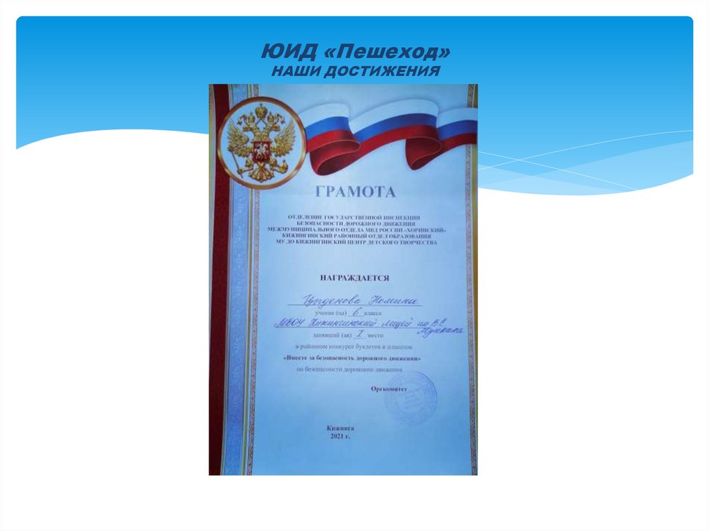 ЮИД «Пешеход»НАШИ ДОСТИЖЕНИЯ