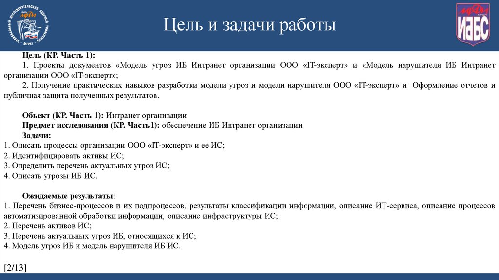 Предмет исследования (КР. Часть1): обеспечение ИБ Интранет организации